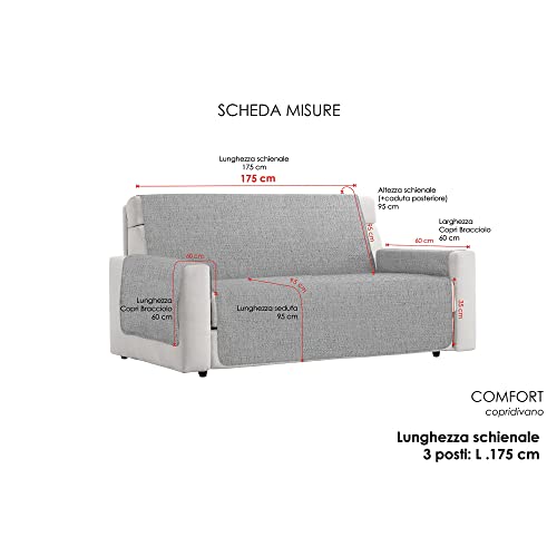 Copridivano antiscivolo “comfort”, dotato di parte inferiore in gomma antiscivolo per fissare l'articolo al divano