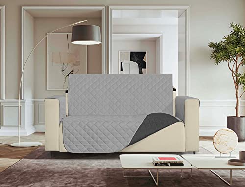Copridivano Bicolore Antimacchia Trapuntato Protettore Impermeabile Salvadivano Reversibile Idrorepellente Imbottito Double face con Elastico Antiscivolo - Grigio Chiaro Grigio Scuro - 2 posti