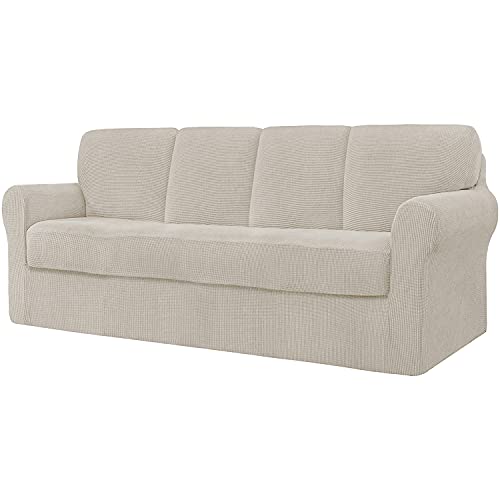 Copridivano Elasticizzato Jacquard Copridivano 4 Posto con 4 Schienale E 1 Cuscino di Seduta Separata Copripoltrona Protezione 240-290cm 6 Pezzi (Beige)