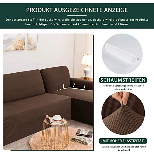 CHUN YI Copridivano con Penisola Elasticizzato, Jacquard Chaise Longue Copridivano Componibile a Forma di L (Destra 2 Posti, caffè)