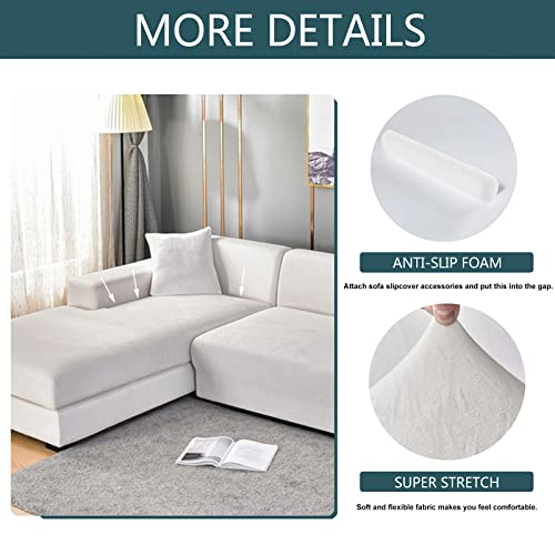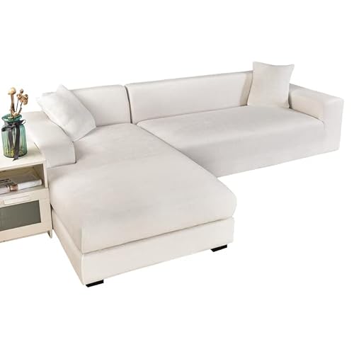 JHLD Copridivano con Penisola Elasticizzato Velluto, Copridivano a forma di L Velluto 2 pezzi Morbido Fodera per Divano Con Fondo elastico Per Cani Gatti -crema-3 posti + 3 posti