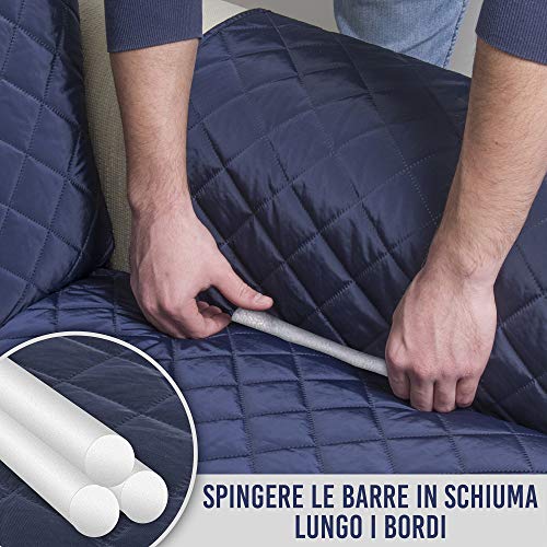 ✅ ASSOLUTAMENTE ANTISCIVOLO, il copridivano trapuntato impermeabile oltre ad avere una banda elastica sullo schienale possiede gommini antiscivolo nella parte interna e quattro schiume antiscivolo che permettono una perfetta aderenza al divano