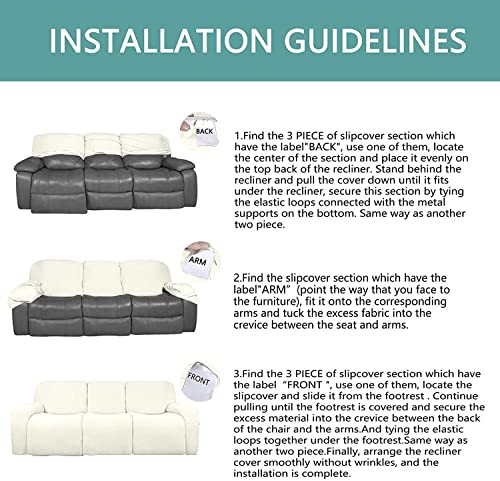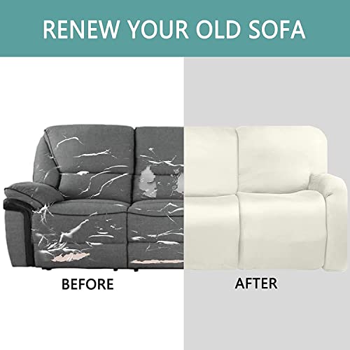 Copridivano Reclinabile A 8 Pezzi Per 3 Cuscini Fodera Per Divano Reclinabile A 3 Posti Copridivano Reclinabile Elasticizzato Morbido A 3 Posti Fodera Per Mobili Resistente All'acqua (Off White)