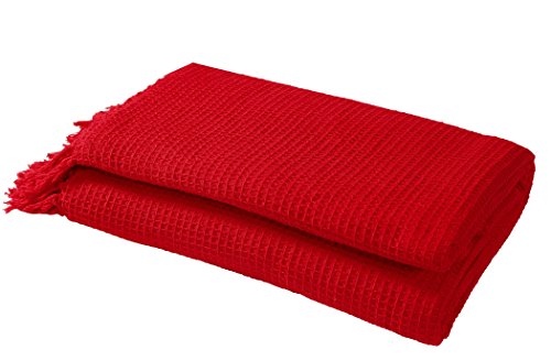 EHC, copriletto 100% Cotone a Nido d'Ape, per Letto Singolo, 127 x 152 cm, Red, Double Bed Throw
