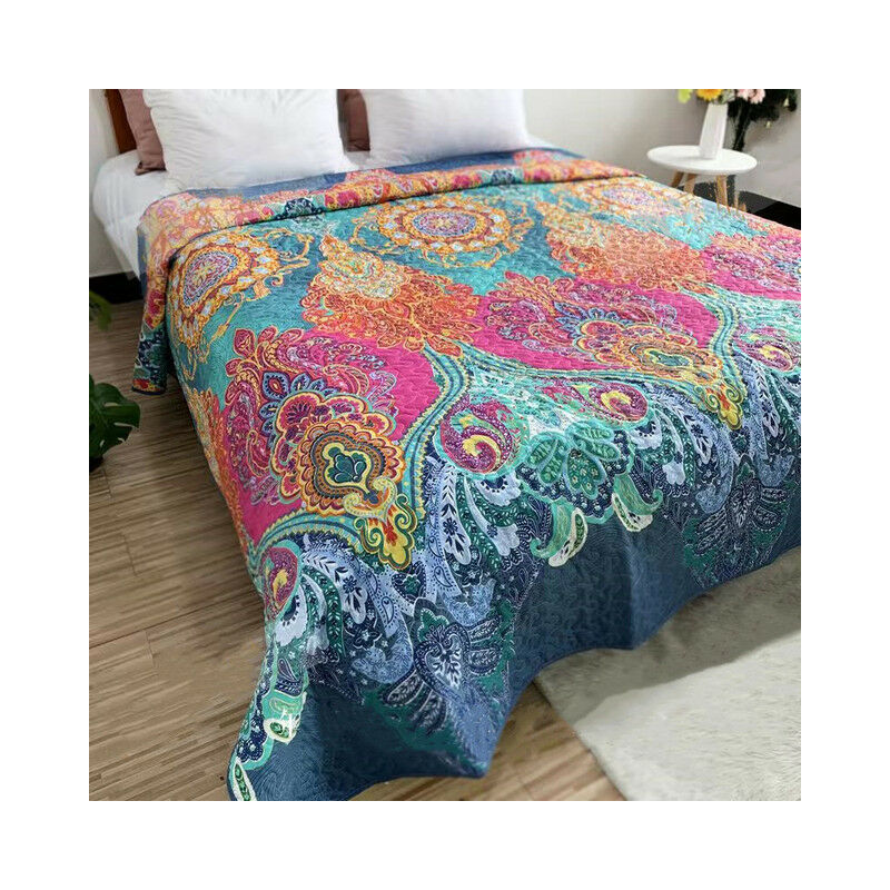 Copriletto copriletto matrimoniale singolo in cotone lavato coperta trapuntata lenzuolo antiscivolo in stile pastorale stampato coprimaterasso Queen,2,220x240cm