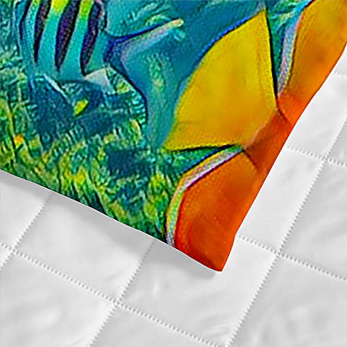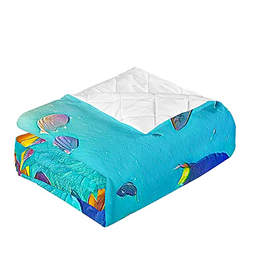 Oduo Copriletto Trapuntato Matrimoniale Singolo Coperta Letto in Morbida Microfibra Trapunta Primaverile Estivo Antipolveri Copri Letto per Camera da Letto (Pesce di mare corallo 1,100x150cm)