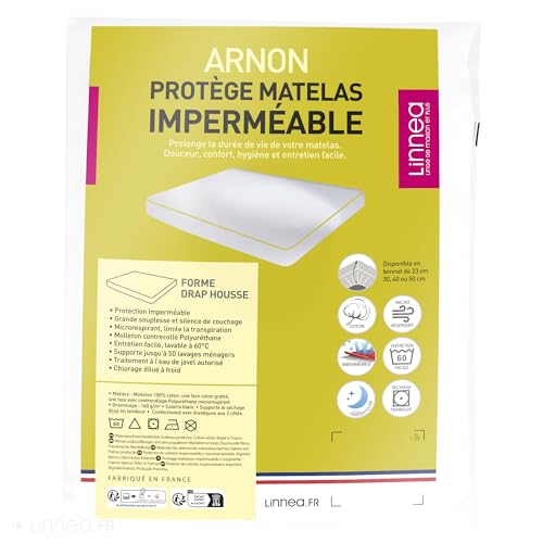 Telo protettivo impermeabile 120 x 200 cm ARNON forma lenzuolo con angoli da 23 cm per materassi fino a 18 cm - Pile laminato poliuretano silenzioso e microrespirante - Facile manutenzione, lavaggio a 95 °C, asciugatura a tamburo - Made in France