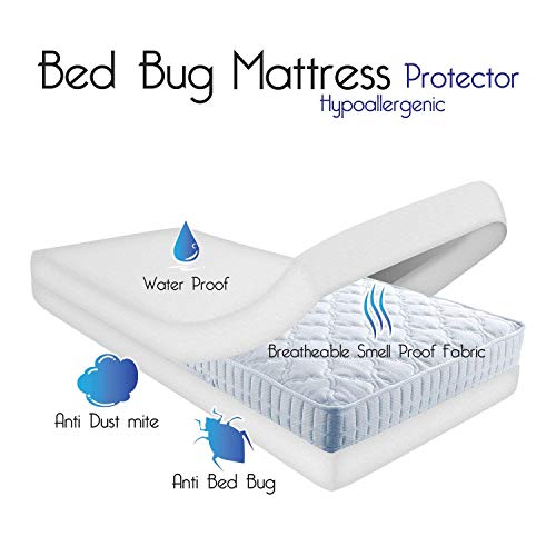 Coprimaterasso impermeabile, sfoderabile, con zip, anallergico, protegge da batteri, acari e insetti, King