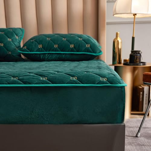 Coprimaterasso Matrimoniale Trapuntato160x190/200 cm Personalizzabile Proteggere Lenzuolo Proteggi Materasso Topper Elastico Copri Materassi Imbottito con 30 cm Extra Profonda, GreenC-90x190+30cm