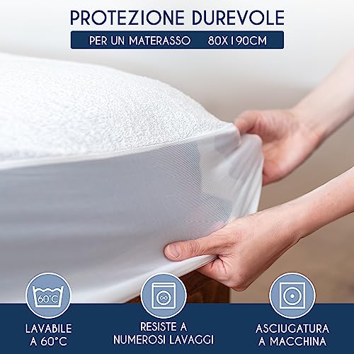 Coprimaterasso Singolo 80x190 Impermeabile Antiacaro e Ipoallergenico Dreamzie - (Made in EU e Certificato OEKO-TEX) - Copri Materasso con Angoli