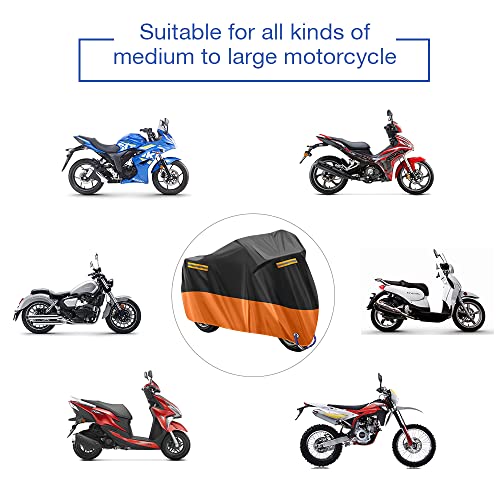 Telo Coprimoto Telo Coprimoto Impermeabile Per Esterno 210D Panno Oxford Copertura per Moto Portatile Moto Motorino Antipolvere Parapioggia, Resistente a Polvere, 265x105x125cm (Arancia)