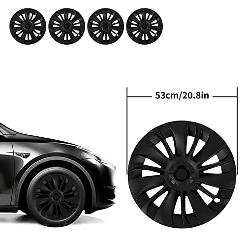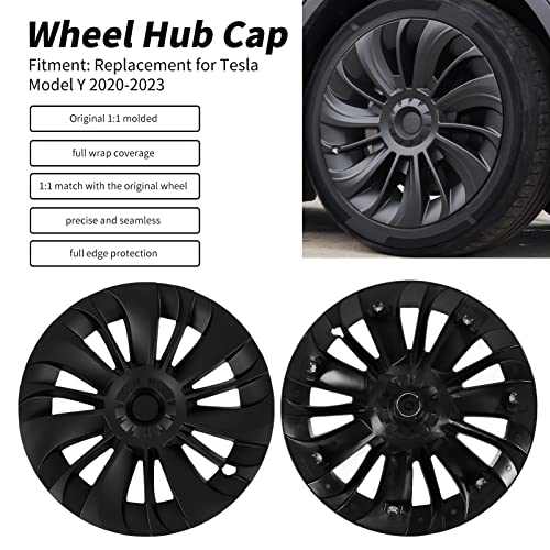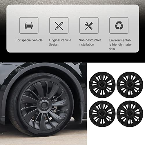 Coprimozzi Copricerchi, Confezione da 4 Coprimozzi da 19 Pollici per Tesla Model Y 2020-2023, Coprimozzo Copriruota Stile Turbina, Copricerchi di Ricambio per Copricerchi Premium (Nero opaco)