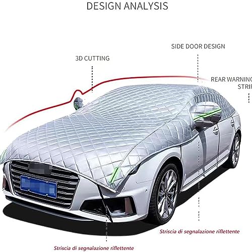➽Protezione superiore: caratterizzata da un design ispessito a quatto strati, questa copertura da neve per auto è costruita per proteggere il tuo veicolo tutto l'anno. Lo strato esterno è costituito da un materiale isolante argentato riflettente che blocca i dannosi raggi UV e mantiene la tua auto fresca. Lo strato interno è un morbido materiale di cotone da 4 mm che protegge la tua auto da graffi e gel. Con capacità di impermeabilità e resistenza a neve, ghiaccio e polvere, questa copertura è