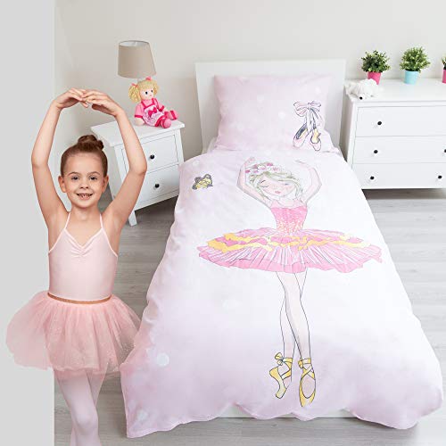 Copripiumino per bambini, ballerina, singolo, 140 x 200 cm, federa 70 x 90 cm, 100% cotone