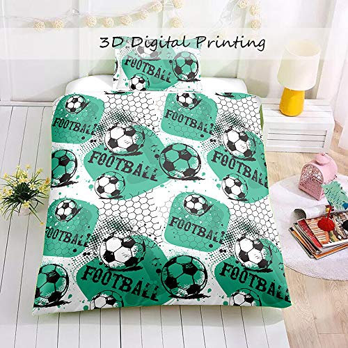 Odot Set Copripiumino 3 PCS, 3D Cartone Animato Serie Stampa Set Biancheria da Letto 100% Microfibra Morbida Doppio con Chiusura a Cerniera e 2 Federe Cuscino (260x220cm,Calcio Verde)