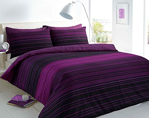 Set copripiumino e federa per cuscino, trapuntato, a strisce e scacchi King Textured Stripe Purple