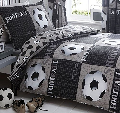 Set copripiumino e federa per letto singolo Shoot Football in poliestere-cotone, grigio