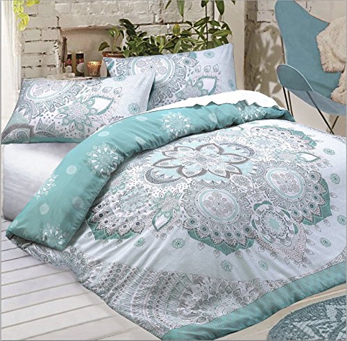 Set con copripiumino e federa, in policotone, motivo mandala, Celestial Mandala Teal, Doppio