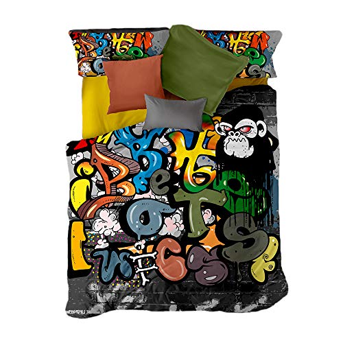 Odot Set Copripiumino 3 PCS, 3D Graffiti Hip Hop Serie Stampa Set Biancheria da Letto 100% Microfibra Morbida Doppio con Chiusura a Cerniera e 2 Federe Cuscino (200x200cm,Alfabeto)