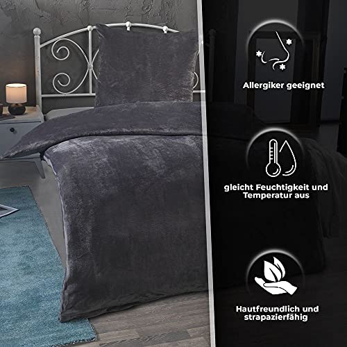 Copripiumino per l'inverno reversibile Nicky-Teddy 'Cashmere Touch' 135 x 200 155x220 Coral Fleece, GRAU, 155 x 220 cm