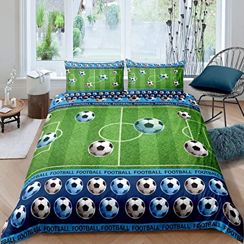Copripiumino Matrimoniale campo da calcio calcio, Letto Matrimoniale Invernali 3d Stampe Microfibra, 260x240 cm Copripiumone con 2 Federe 50x80 cm con Cerniera