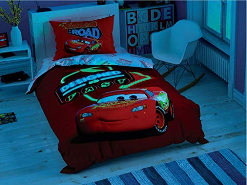 TAC Set copripiumino singolo in 100% cotone con licenza Disney Cars Shiny Road (senza piumino)