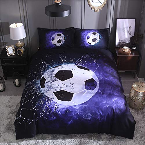 Odot Set Copripiumino 3 PCS, 3D Sport Serie Pallacanestro Calcio Set Biancheria da Letto 100% Microfibra Morbida Doppio con Chiusura a Cerniera Copripiumino e 2 Federe (200x230cm,Calcio)