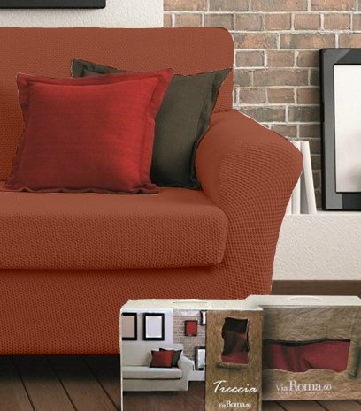 COPRIPOLTRONA ELASTICIZZATO in tessuto bi - elastico - TRECCIA by Via Roma 60 - MATTONE