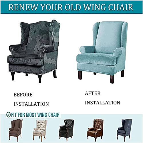Costruzioni in due pezzi:Questa fodera per sedia ad ala ha 2 pezzi. Paragonato a 1 fodera per sedia ad ala pezzo, c'è un'altra fodera per cuscino. Puoi mettere il panno extra sotto il cuscino del sedile, che può fornire un effetto di fissazione affidabile e rendere la fodera più adatta alla tua sedia ad ala.