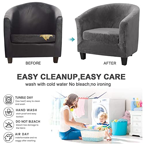 Copripoltrona in Velluto | Copripoltrona con Orecchie Poltrona Protettiva Elasticizzato Antiscivolo | Fodera Protettiva Divano con Braccioli per Tullsta,Bancone,Soggiorno,Reception, Grigio