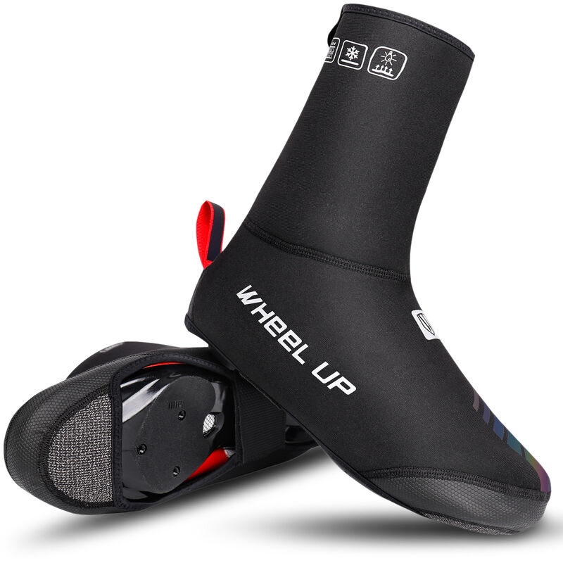 Il copriscarpe impermeabile e antivento ti mette a tuo agio durante la pedalata, adatto per gli amanti della bicicletta. Caratteristiche: Realizzato in materiale di nylon di alta qualita, resistente ai graffi e agli strappi, ad alta intensita e lunga durata. Design con cerniera liscia per comodo da indossare e da togliere, risparmio di tempo e risparmio di manodopera. Design a strisce riflettenti per maggiore visibilita e sicurezza di notte, migliora la tua sicurezza. Il tessuto resistente all'usura sulla suola anteriore offre una migliore protezione, antiscivolo e durevole. Facile da installare e staccare con il forte nastro adesivo di fissaggio, solido e affidabile, piu conveniente. Il processo di saldatura senza cuciture e il design della scarpa alta proteggono efficacemente dal vento e dalla pioggia, mantengono i piedi caldi e asciutti durante il ciclismo. Il comodo design di umanizzazione per il movimento in bicicletta senza limitare i tuoi movimenti, ti consente di pedalare al