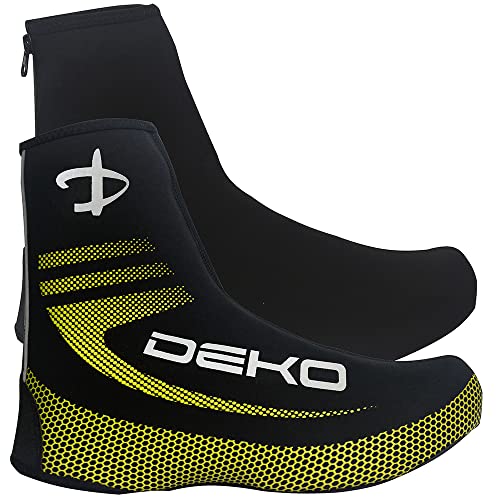 DEKO Copriscarpe da ciclismo per uomo e donna, protezione invernale dal freddo, in neoprene per bici da strada e MTB HeavyDuty, Nero giallo, large