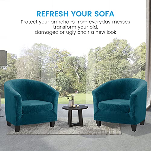 【Design 2 in 1 aggiornato e tessuto ad alta elasticità】 Coprisedia 2 in 1 con design aggiornato e la federa è separata e non è necessario continuare a regolarla. Coprendo il cuscino separatamente, non solo può infilare il tessuto extra sotto il cuscino, ma anche il problema del rimbalzo è decisamente risolto. Le coperture per sedie a vasca da bagno sono realizzate in morbido tessuto di velluto elasticizzato, che si adattano perfettamente a una vasta gamma di dimensioni e stili della sedia da vasca e danno alle tue sedie una nuova vita