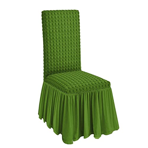 Coprisedie Coppia 2 Cuscini Vesti Sedia con Volant Tessuto Bolle Vari Colori (Verde)