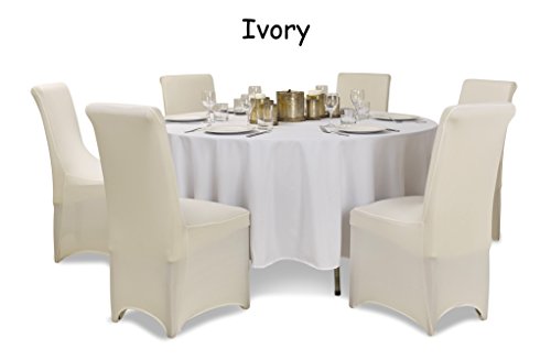 Coprisedie elastici in lycra e spandex, ideali per tutte le occasioni, parte frontale piatta, per sala da pranzo, matrimonio, banchetto, festa, Ivory, 1