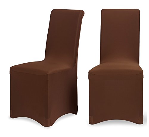 Coprisedie elastici in lycra e spandex, ideali per tutte le occasioni, parte frontale piatta, per sala da pranzo, matrimonio, banchetto, festa, Chocolate, 1