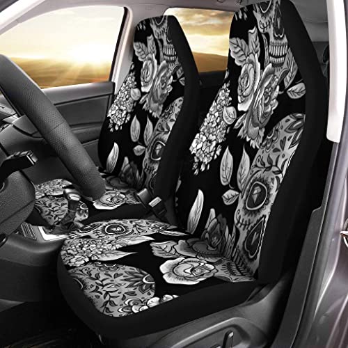 937 2 Pcs Coprisedile Bambini Teschio Messicano Rosso e Fiori Modello Monocromatico Day Dead Coprisedile Auto Impermeabile e Reversibile Universale Auto Macchina Seat Coverset Coprisedile per 52x452cm