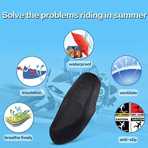 Coprisedile moto, Riloer Coprisedile impermeabile Protector 3D Spacer Tessuto a rete a nido d'ape Cuscino antiscivolo traspirante per scooter Ciclomotore Taglia XXL
