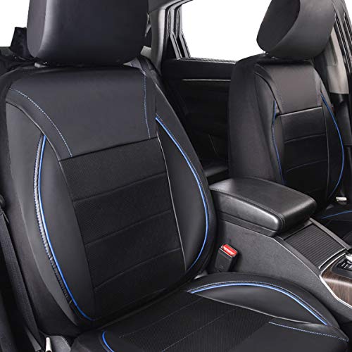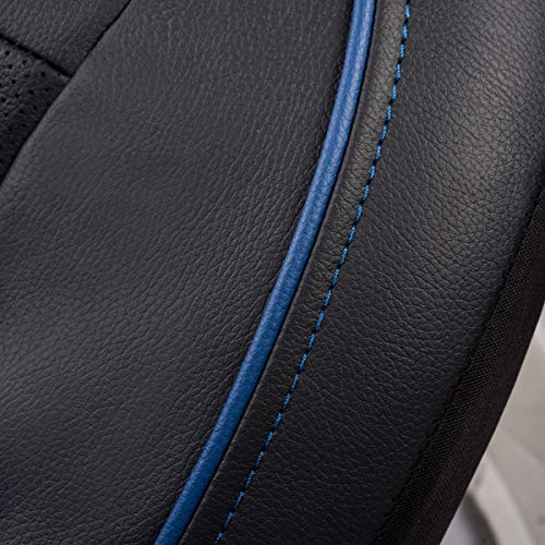 CAR PASS Coprisedile universale in pelle per SUV, furgoni, camion, airbag, fori di apertura riservati per copripoggiatesta (6 pezzi, nero e blu)