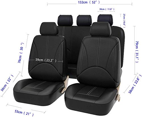 【 Set di 9 Pezzi coprisedili per auto universali】: progettati per il 99% dei sedili auto standard (auto, camion, furgoni e SUV) - Sedile anteriore: 21 "L x 22" W. - Schienale anteriore: 23 "L x 30" H. - Sedile posteriore: 52 "L x 23" W. - Schienale panca posteriore: 52 "L x 31" H. - Poggiatesta: 12 "L x 11" H.