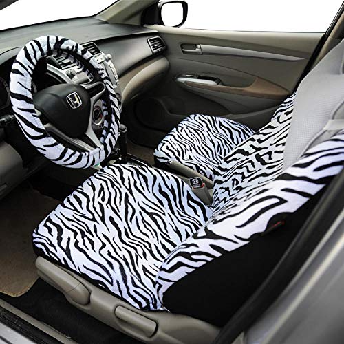 Coprisedili corti in peluche Zebra Coprisedili universali per la maggior parte dei seggiolini auto Coprivolante Coprisedile bianco