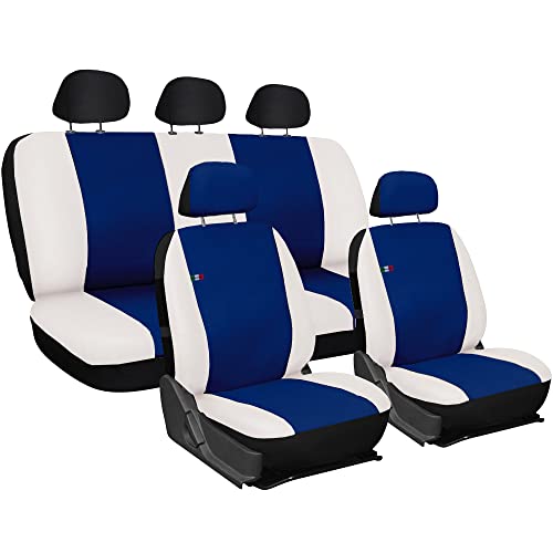 Susy Shop Coprisedili ecopelle Compatibili per Panda Seconda Serie (mod.169) Versione Intera | Set Copri-Sedile Anteriori e Posteriori (Blu/Bianco)