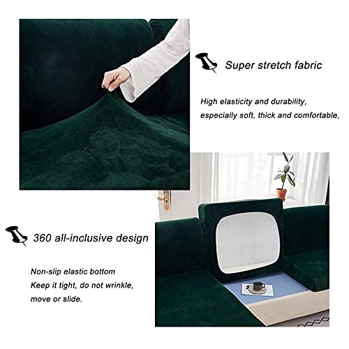 JHLD Copriseduta Divano Elasticizzato Velluto, Morbido Peluche Coprisedile per Divano Cuscino per Divano Mobili Protettore per Cuscini dei Sedili del Divano-Verde scuro-1Posti-X