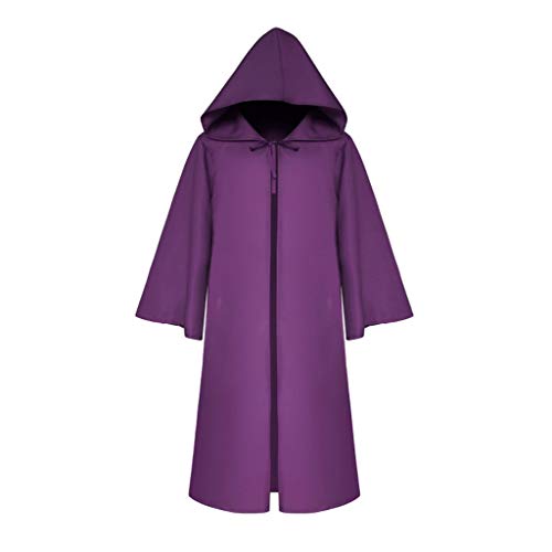 Coprispalle Cappotto Cosplay Donna Uomo Vintage Mezza Manica Solido Mantello con Fasciatura con Cappuccio (M,2- Viola)