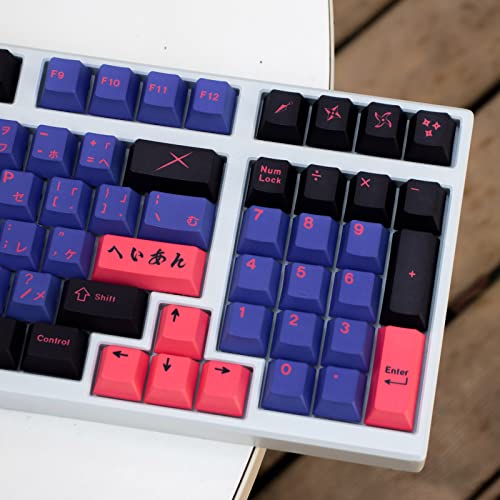 PBT - Set di 138 copritasti giapponesi con profilo Cherry MX, Gateron, Kailh, per interruttori meccanici Cherry MX, Gateron, Kailh, colore: nero e viola