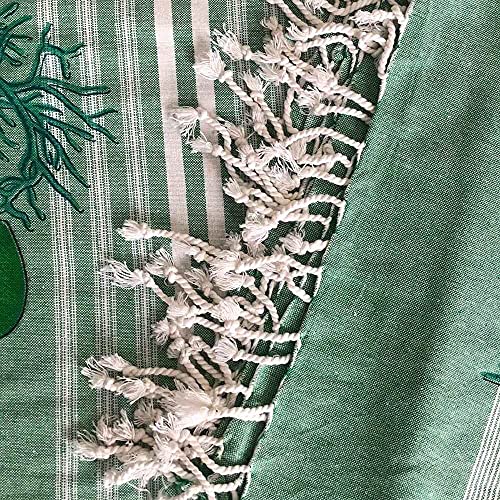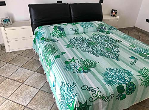 Copritutto Copriletto Kapuka Sharm Stampato 100% Cotone Copri Divano con Frange 210x240cm Telo Mare (Verde)