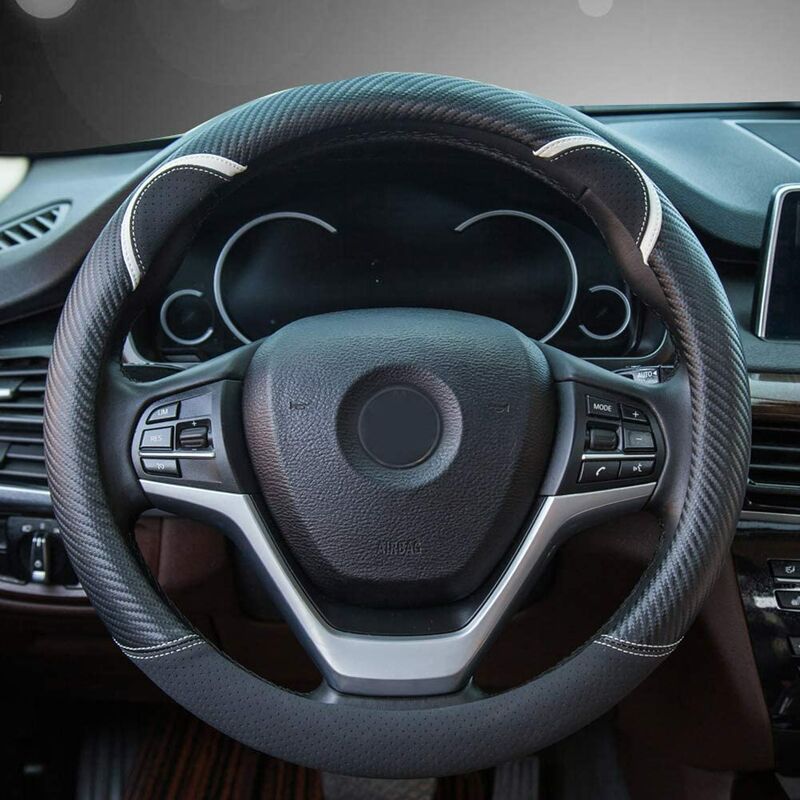 MISURA UNIVERSALE - - Adatto per volanti di medie dimensioni da 14,5" a 15" (da 37 cm a 38 cm) di diametro. La dimensione universale si adatta alla maggior parte dei VEICOLI, SUV, FURGONI, CAMION. Installazione facile da infilare. 【QUALITÀ PREMIUM】 - Realizzato in pelle microfibra esterna e interna in gomma naturale senza odore terribile, ecologico e salutare. 【GRANDE COMFORT】 - Con liscio, morbida e confortevole Pelle in microfibra, questo coprivolante è morbido, resistente al calore, al freddo e all'usura, manterrà le mani asciutte dal sudore al caldo. 【MAGGIORE SICUREZZA】 - Anti- il design antiscivolo dell'anello esterno ed interno del coprivolante offre una presa migliore sul volante, offrendoti un maggiore controllo sulla strada. 【DECORAZIONE E PROTEZIONE】 - Protetto le mani e il volante originale, proteggi il tuo volante tutto l'anno, anche l'arredamento perfetto per la tua auto, rendi la tua auto unica.