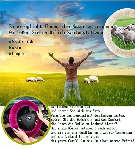 Materiali di alta qualità: coprivolante in peluche realizzato in pura lana australiana di alta qualità. Tessuto ad alta densità, caldo, soffice, traspirante, non perde pelo. Buona resistenza all'umidità e buona resistenza al calore. Il rivestimento interno del coprivolante è realizzato in pelle scamosciata, design antiscivolo, che offre una buona presa sul volante e rende il viaggio più sicuro.