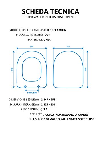 Copriwater per ALICE CERAMICA ICON TERMOINDURENTE BIANCO cerniera inox normale o rallentata soft close