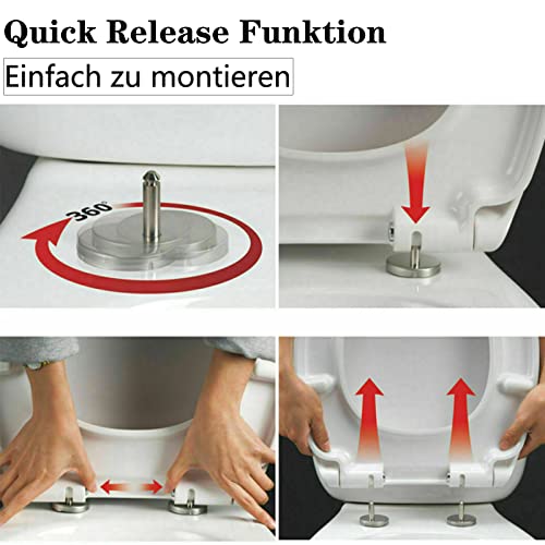 Copriwater a forma di D, sedile WC con abbassamento automatico, funzione Quick Release, antibatterico, in duroplast, con cerniere regolabili, coperchio WC per WC e WC, colore bianco